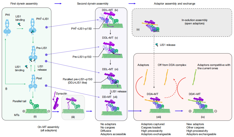 细胞内物质的精准运输对于维持细胞结构和功能稳定至关重要。动力蛋白(Dynein)是一类重要的分子马达蛋白,负责沿微管轨道运输细胞器、蛋白质复合物及其他关键物质,在细胞分裂、物质运输及细胞极性建立等过程中发挥核心作用。然而,动力蛋白如何从非活性状态组装成为具有运输功能的活性复合物,其具体分子机制长期未明,是细胞生物学领域的重要科学问题之一。