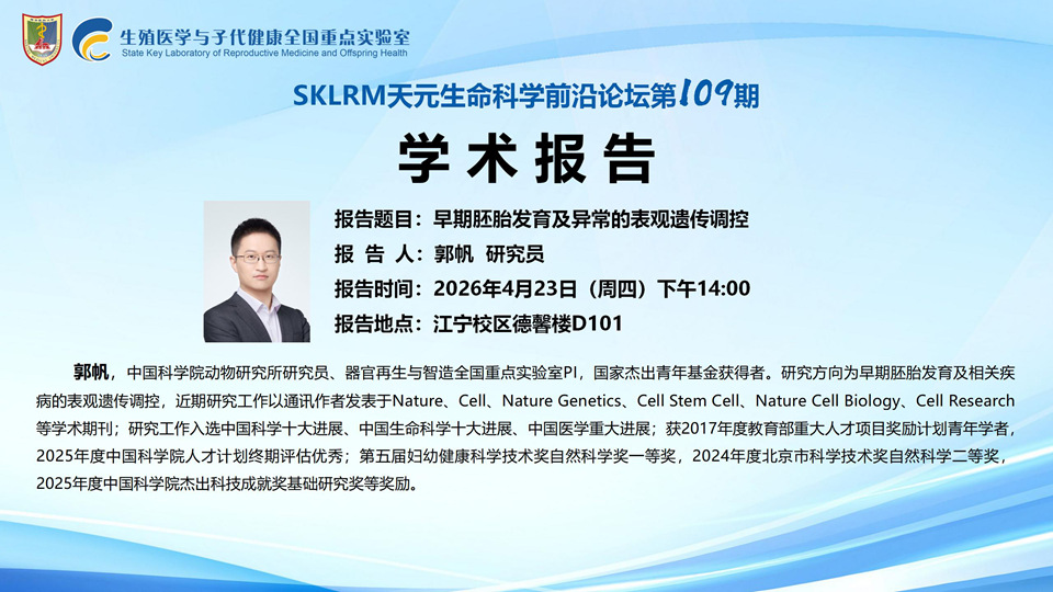 SKLRM天元生命科学前沿论坛第109期:中国科学院动物研究所 郭帆研究员