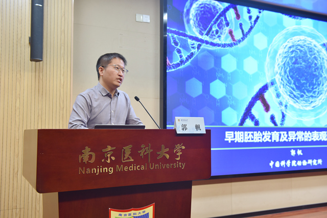 2026年4月23日,南京医科大学“百大名家进校园”系列学术活动暨SKLRM天元生命科学前沿论坛第109期在江宁校区德馨楼D101报告厅顺利举行。应实验室王强教授邀请,中国科学院动物研究所郭帆研究员为我校师生带来题为“早期胚胎发育及异常的表观遗传调控”的学术报告。生殖医学与子代健康全国重点实验室及各学院师生参加了本次讲座。